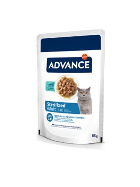 Comida húmeda para gatos adultos esterilizados, adecuada para ofrecer a tu mascota un alimento completo que contribuye a mantener un peso óptimo.