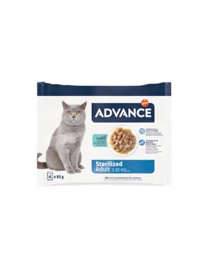 Comida húmeda para gatos adultos esterilizados, adecuada para ofrecer a tu mascota un alimento completo que contribuye a mantener un peso óptimo.