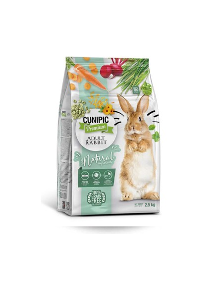 Heno (34%), (Timothy, festuca, ray grass, alfalfa y heno de la montaña secado al sol, son algunas de las mas de 45 de especies que componen este heno), semillas de girasol integral, salvado 10%, soja integral, copos de guisantes, pulpa de manzana (5,59%, vainas de algarroba, cáscara de soja, zanahoria (3,50%, melaza de caña, pulpa de remolacha (3%), habas, carbonato cálcico, raíz de achicoria, semilla de lino, menta, equinácea, caléndula, sal, levadura de cerveza, orégano, tomillo, canela y cúrcuma..
