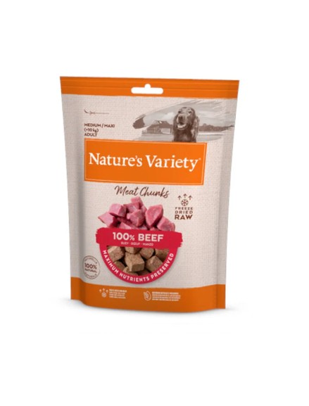Durante la elaboración, la carne se corta en forma de pequeños cubos y se congela a muy baja temperatura. Luego, estos bocaditos se empacan al vacío para extraer la humedad del alimento. El resultado es una golosina de alto valor nutricional y una textura de carne exquisita de pollo con un sabor que le encantará al animal y, además, muy fácil de digerir.