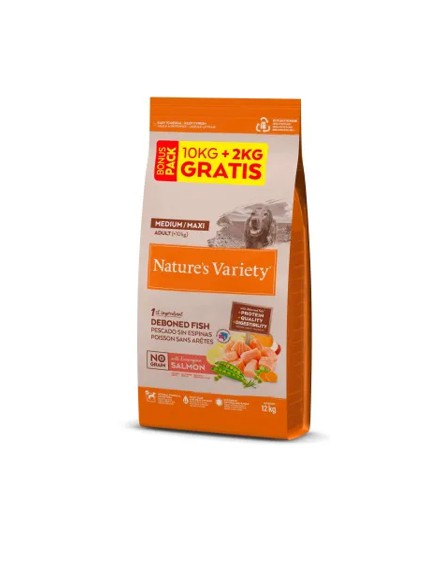 Carne de salmón noruego sin espinas*(16%), proteína deshidratada de atún (15%), guisantes deshidratados* (13%), patata deshidratada* (11%), grasa avícola* (8%), bonito* (6%), proteína deshidratada de salmón (6%), proteína de guisante*, proteínas animales hidrolizadas (ave, cerdo, pescado) (4%), pulpa de remolacha*, sustancias minerales, zanahoria deshidratada* (0,5%, equivalente a un 4% de zanahoria fresca), manzana deshidratada* (0,3%, equivalente a un 2% de manzana fresca), algas marinas deshidratadas (kelp)* (0,01%), romero deshidratado* (0,01%). *Ingredientes naturales.