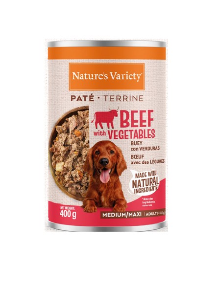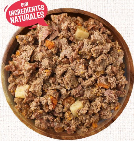 Buey* (30%), cerdo* (21%), pollo* (10%), pavo* (4%), patatas* (2%), zanahorias* (2%), sustancias minerales, aceite de salmón*, inulina* (0,2%). *Ingredientes naturales.